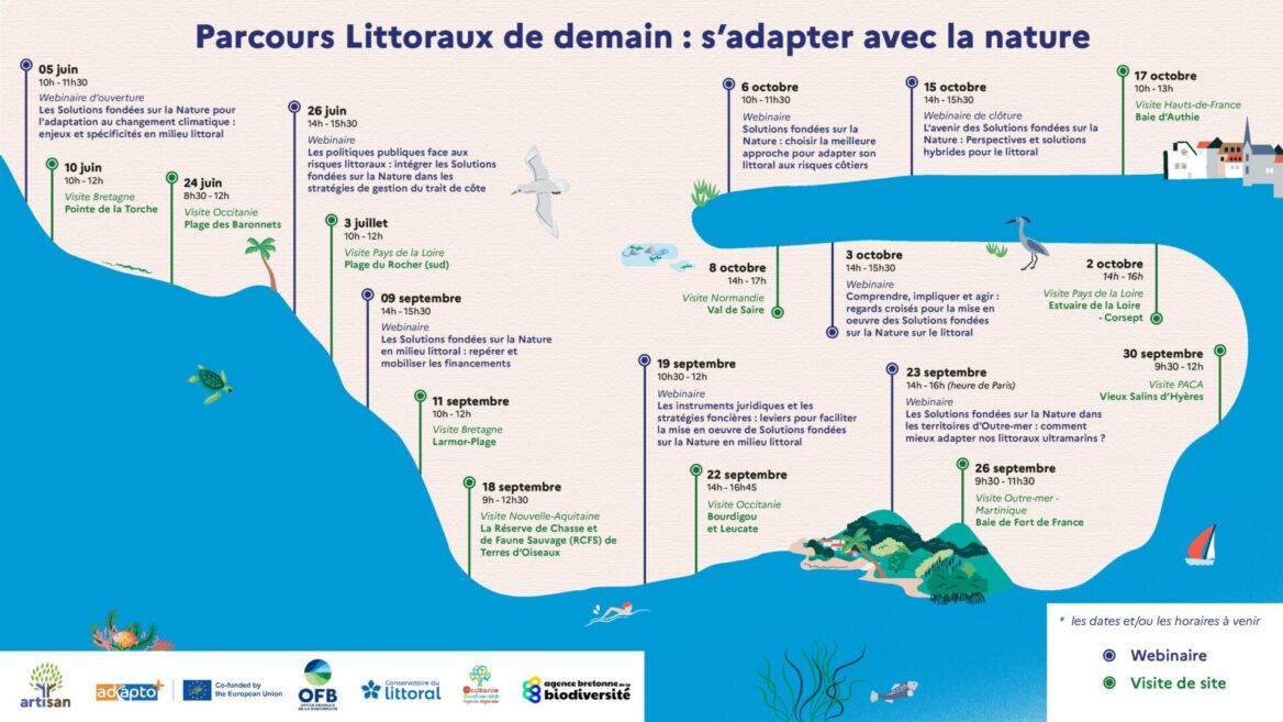 <p>De juin à octobre, l'<a href="https://ofb.gouv.fr/">Office français de la biodiversité</a> et le <a href="https://ofb.gouv.fr/life-artisan">projet Life ARTISAN</a>, en partenariat avec le <a href="https://www.conservatoire-du-littoral.fr">Conservatoire du littoral</a> et le Projet <a href="https://lifeadaptoplus.eu">LIFE Adapto+</a>, ont réuni experts, collectivités scientifiques et acteurs de terrain autour d’un objectif commun : illustrer comment les Solutions fondées sur la Nature (SfN) peuvent renforcer la résilience de nos littoraux aux effets du changement climatique.</p>